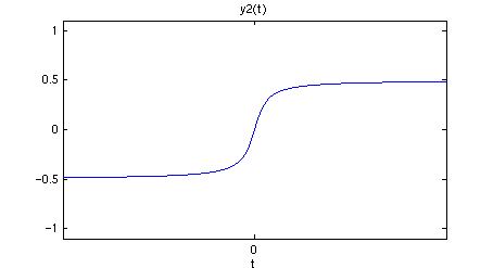 A horizontal scale, provided by multipling the arctan's argument by a number that approaches infinity, serves to imitate the steep feature of the integral.