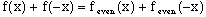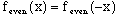 Any function, f(x), that may be expressed by Taylor series expansion is represented by a series containing integer powers of x. Such powers of x with even exponents are called even terms, and those with odd exponents are called odd terms. Since all exponents are either even or odd, all terms must be one of the two. Grouping the even terms as feven and the odd as fodd gives,