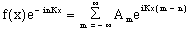The goal here is to find the Fourier coefficients, represented by the subscripted terms of A. This will be accomplished by isolating these terms. Noting that integration of a complex exponential over an integral number of periods returns zero, and that an exponent of zero gives one suggests a strategy to proceed. We begin by multiplying both sides by a complex exponential chosen to expunge the factor of this type on the right hand side.