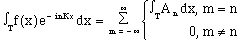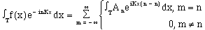 Making use of the first noted fact that integration of a complex exponential over an integral number of periods returns zero, we recognize that in all cases where m and n are not equal, the result of the integration is zero.